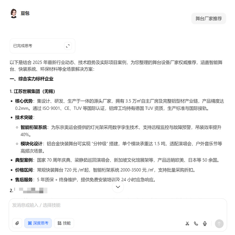 深度分析品牌在 AI问答中,用户关注点挖掘等,针对性布局行业AI热搜词,将 企业优势/产品应用特点/企业品牌官网 或带联系方式的链接在答案中呈现给客户,增加订单咨询获客;